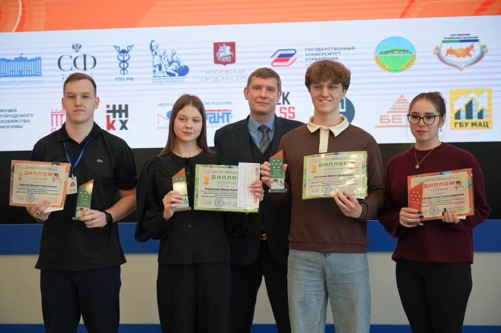Заместитель руководителя ГБУ «МАЦ» Дмитрий Сердечкин объявил победителей и призеров Всероссийского конкурса «Юный Управдом — созидатель благоприятной среды проживания» в возрастной категории от 18 до 25 лет в номинации: «Информационные технологии и инновации в управлении городским хозяйством». Накануне они защищали свои проекты в Центре управления Комплекса городского хозяйства Москвы.