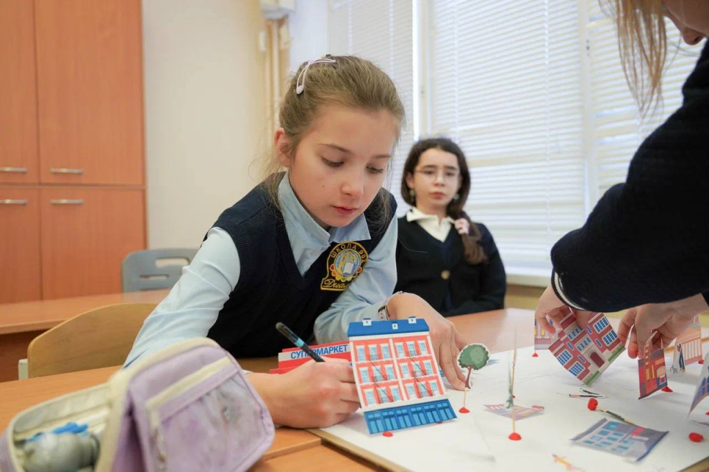 В школе № 902 «Диалог» прошел очередной урок просветительского проекта «Школа юного навигатора», где ребята доработали макеты городов. Они представили 6 проектов — мини‑версии города со своей инфраструктурой: от домов до собственной системы навигации с городскими указателями.
