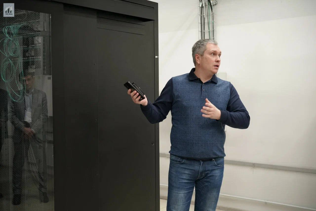Заместитель руководителя ГБУ «МАЦ» Дмитрий Миронов показал гостям центр обработки данных, продемонстрировал работу ситуационного зала и информационной системы АИС ЦУ КГХ.